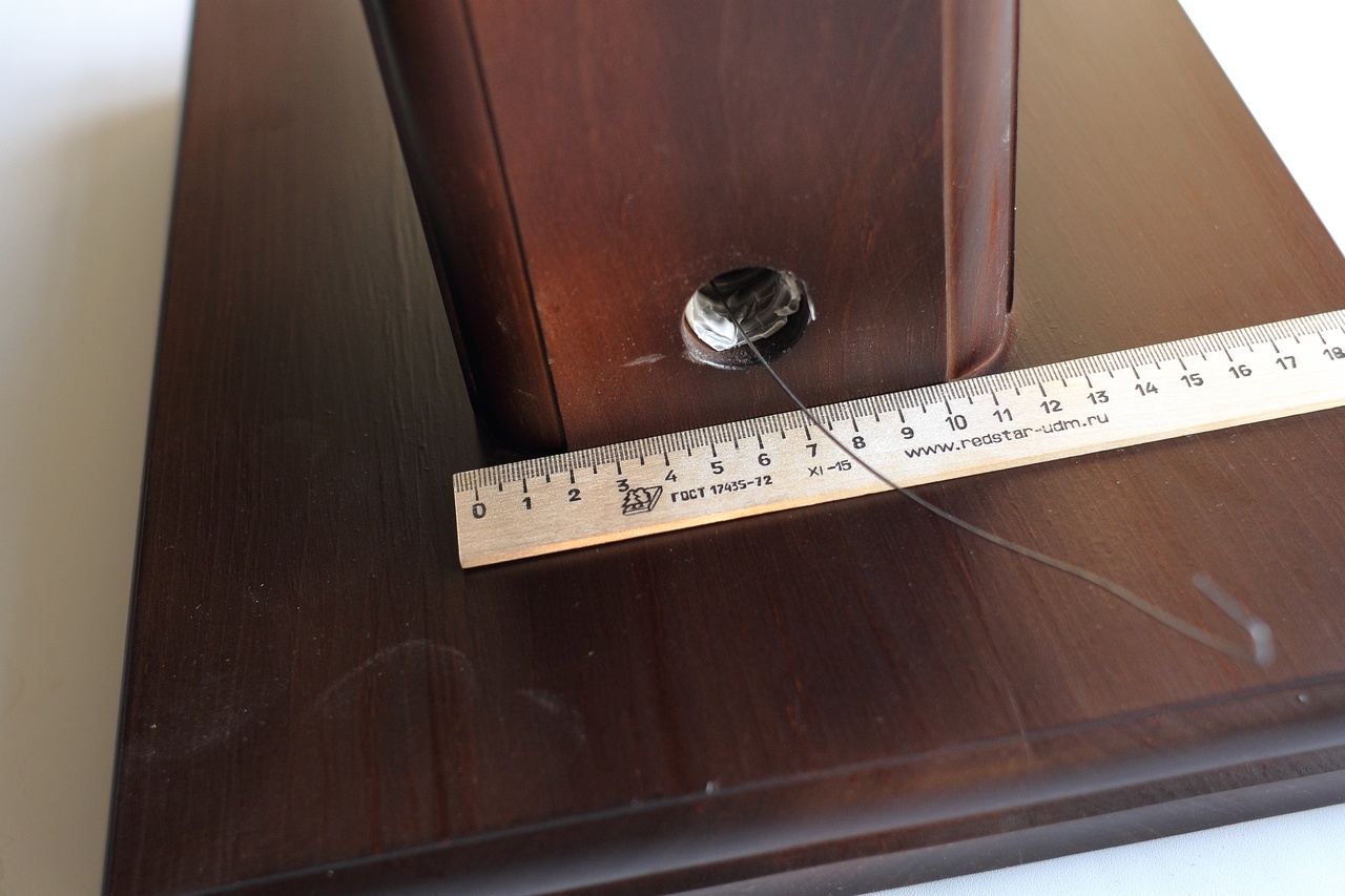 Подставку необходимо сделать съёмной, но не такой, как на фотографиях, а на шурупах. Подставку будут снимать чаще, чем основание, поэтому вариант с двумя длинными шурупами M6 и металлическими вставками с внутренней резьбой в ноге мне кажется самым оптимальным.