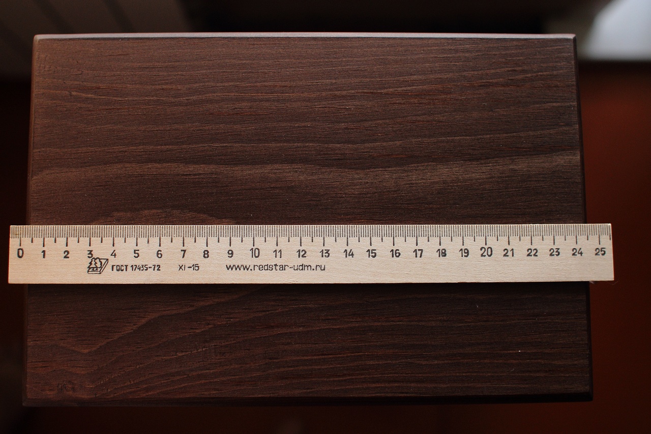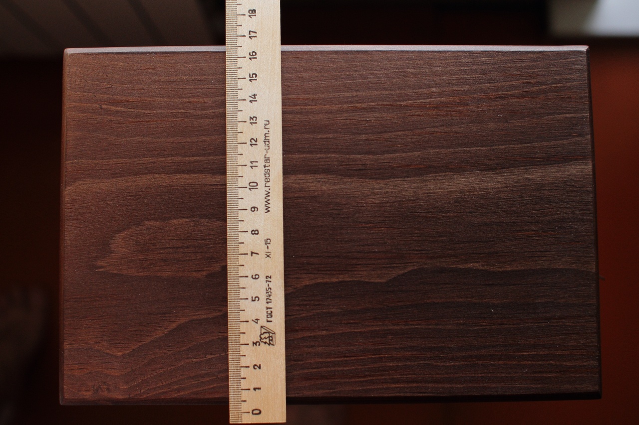 Морилка на фотографиях - под венге. Судя по всему спиртовая (высохла очень быстро и сильно воняла). Я бы предпочёл менее вонючие и более устойчивые варианты (вода, акрил), а также более светлый оттенок (сейчас у меня везде морилка под лиственницу).